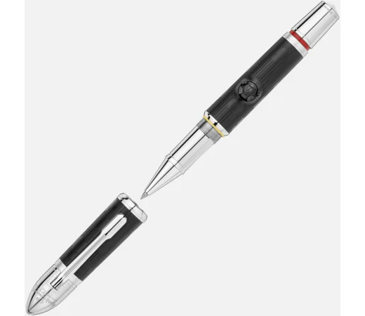 華特.迪士尼之名與電影動畫藝術和美國電影歷史密不可分。最初只為完善卡通製作技術的構思,發展成規模難龐大的帝國。華特.伊利亞斯.迪士尼(Walter Elias Disney)於 1901 年生於芝加哥,銳意創新,擅於發明,成為當代極具影響力、備受推崇的電影製片人。書寫工具的整體造型啟發自享負盛名的迪士尼樂園單軌電車系統,其顏色呼應 1920 年《汽船威利號》(Steamboat Willy)原版海報上的米奇老鼠。筆蓋和筆身為啞光黑色珍貴樹脂,帶有多個隱藏的米奇老鼠,筆蓋頂部可見華特.迪士尼系列簽名。筆身前部鐫刻一組座標,紀念迪士尼的事業早期的重大成就。座標屬於華特.迪士尼叔父的車庫;華特.迪士尼和兄長在車庫內組建了攝影腳架。