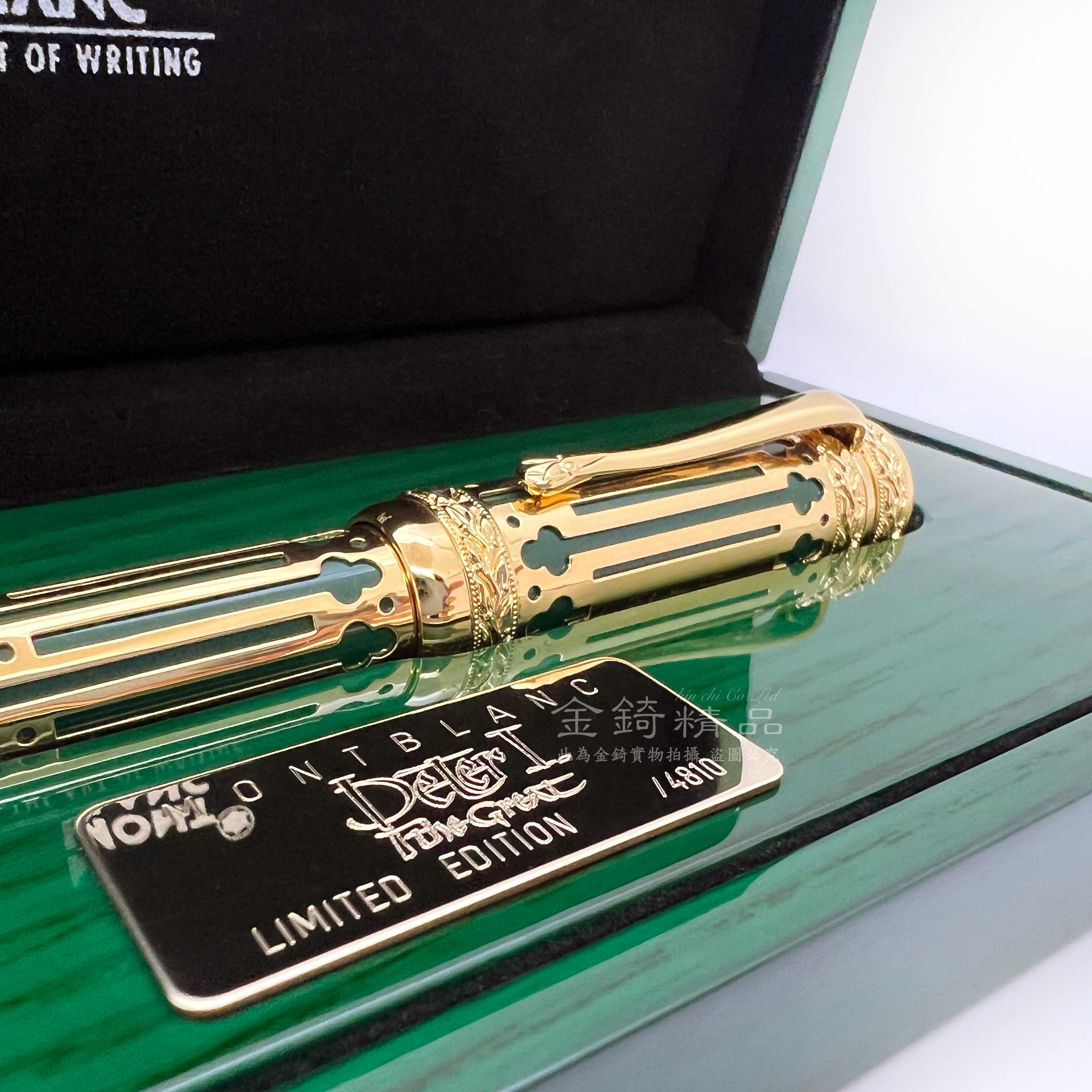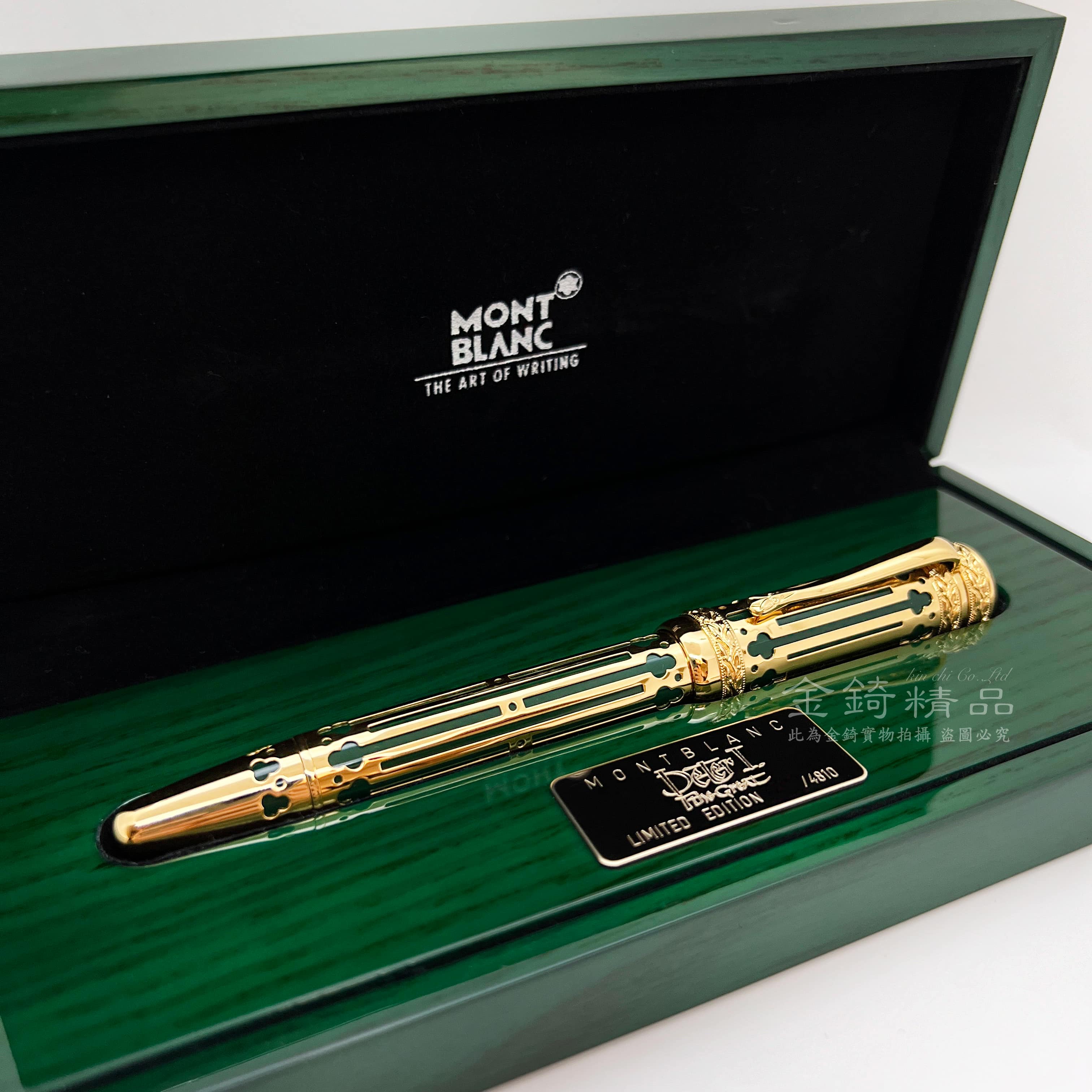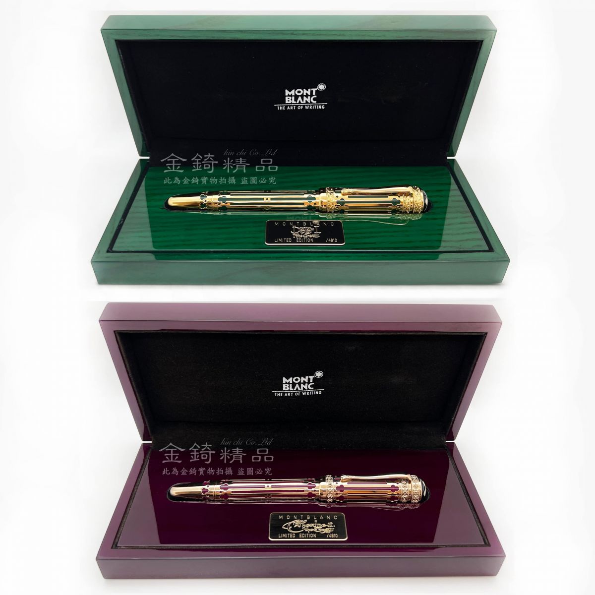 在深綠色筆身上,圍繞著鍍金裝飾的金色月桂冠圖案,極富美感,炫目耀眼。