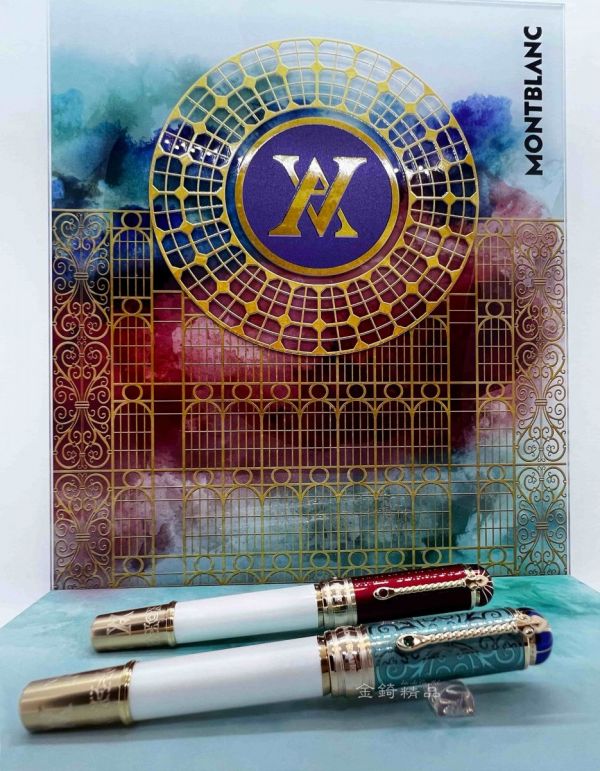 (⚠️網頁即時同步庫存量會延遲,下單前請先洽電詢問有無現貨!) (此商品為兩支同號碼一對銷售 10,800$ x2支) 萬寶龍藝術贊助系列向維多利亞女皇致意限量版 4810 鋼筆 筆蓋塗覆薄荷綠色半透明亮漆,這是維多利亞女王最喜愛的色調,而筆蓋頂部的設計靈感則來自皇室藍色王冠。筆蓋圓環鐫刻女王的名言:「I will be good」(我會是個好女王)。筆夾形狀的靈感來自皇家權杖,鑲有綠石,象徵女王的訂婚戒指。筆尖以 Au750 純金製作,刻上形象化的玫瑰圖案,紀念有「英格蘭玫瑰」稱號的維多利亞女王。 萬寶龍藝術贊助系列向亞厘畢親王致意限量版 4810 鋼筆 筆蓋塗覆深紅色半透明亮漆,讓人想起艾爾伯特在婚禮上穿著的英國陸軍上將制服。筆蓋的造型仿照水晶宮穹頂。筆蓋圓環鐫刻了座右銘「Treu und fest」(「堅毅忠貞」),靈感來自艾爾伯特的皇家紋章,後者刻在 Au750 純金筆尖上。權杖形筆夾以紅石裝飾。
