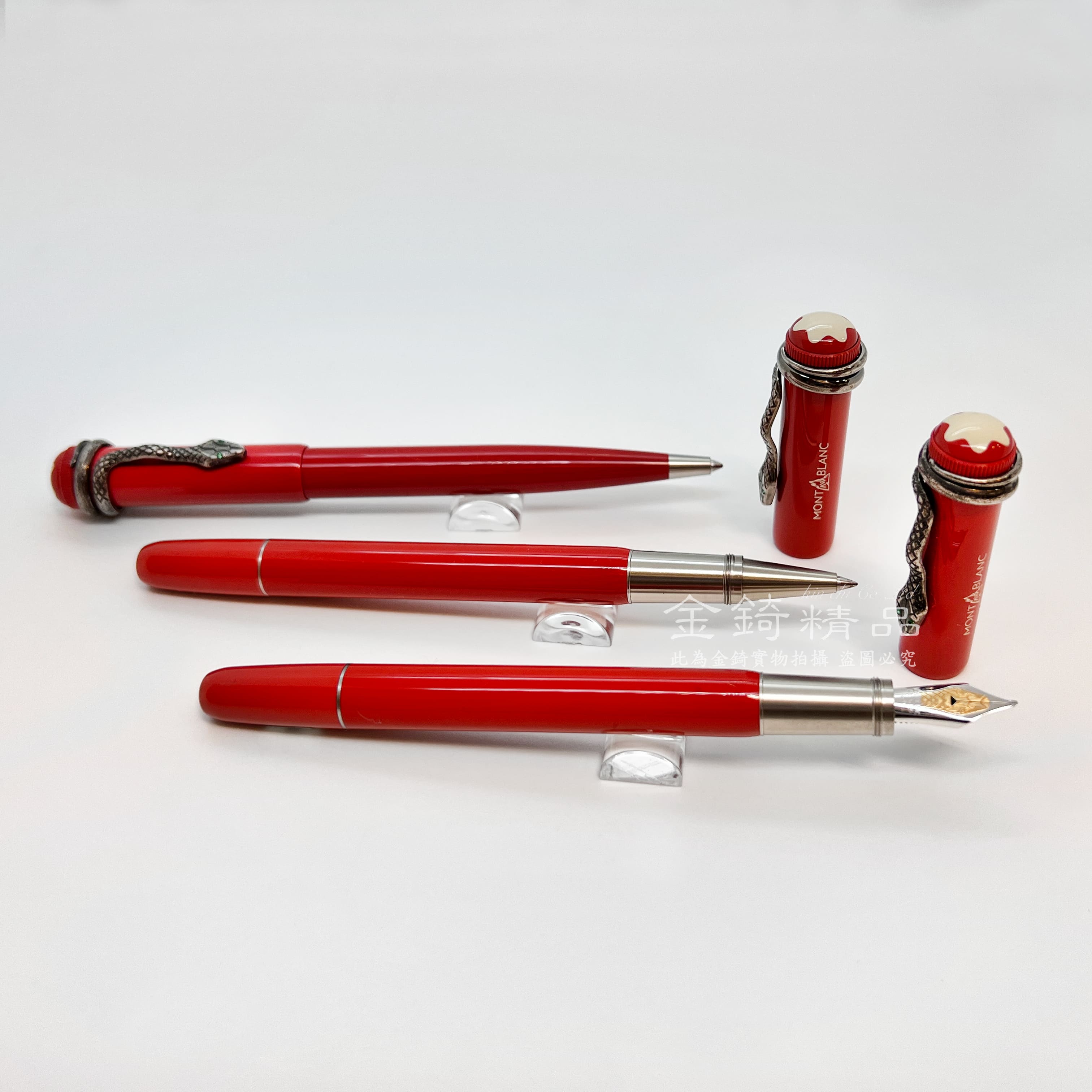 萬寶龍MONTBLANC-傳承系列-蛇-紅-鋼筆/鋼珠筆/原子筆(蛇眼-綠色光晶石)